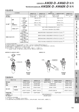 注2) AW60 (K) -D是包含一个A/B托架和安装螺钉(2个)的组件。关于AW60 (K) -D用的固定螺母请咨询SMC公司。