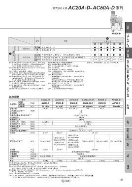 注1) 排水导管为NPT1/8 (适用于AC20A-D)、NPT1/4 (适 注9) 杯体保护罩为标准配置(聚碳酸酯)。 注18) △ :请和可选项E1、E2、E3、E4并列选择。