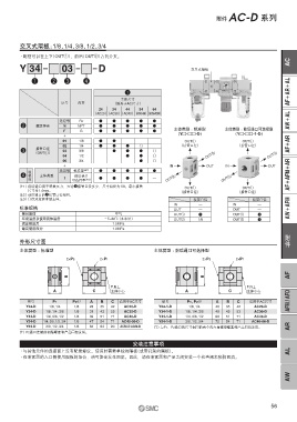 型号 P1 P2 注) A B C 适用于AC尺寸 型号 P1, P2 注) A B C 适用于AC尺寸 AFM / AFD