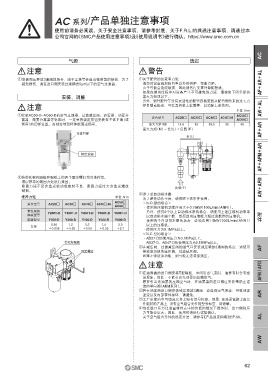 AC60□ · 使用的压缩机功率应当大于0.75kW (100L/min (ANR))。