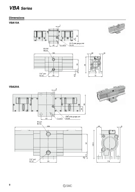 VBA Series Dimensions VBA10A 7 60 17 OUT side gauge port 40 4 x ø5.5 Rc1/8 IN port Rc1/4 195 10 10 49 84 20 OUT port Rc1/4 50 8.5 70 VBA20A 9 98 26 OUT side gauge port 53 4 x ø12 Rc1/8 IN port Rc1/2 338 23 9 92 145.5 32.5 13 OUT port Rc1/2 84 118 9