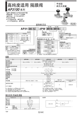 高纯度适用 隔膜阀 手动型 高纯度适用 隔膜阀/手动型 高压大流量 AP3100 系列