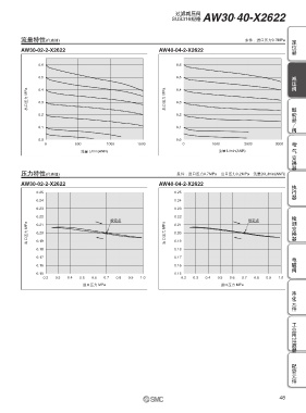 压力特性(代表值) 条件 :进口压力0.7MPa 出口压力0.2MPa 流量20L/min(ANR)