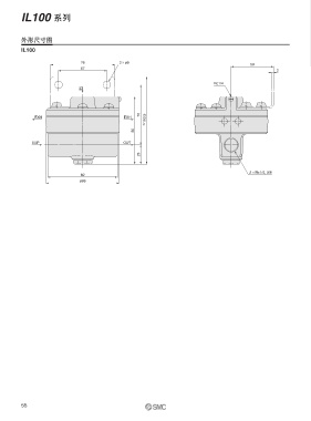 IL100 系列 外形尺寸图 IL100 76 2×ø9 50 57 2 Rc1/4 IN 70 EXH EXH 103.5 80 SUP OUT 23 2×Rc1/4, 3/8 82 ø86 55