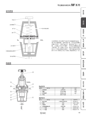 给气阀; 侧。二次侧压力作用于e膜片,与w设定弹簧的压缩